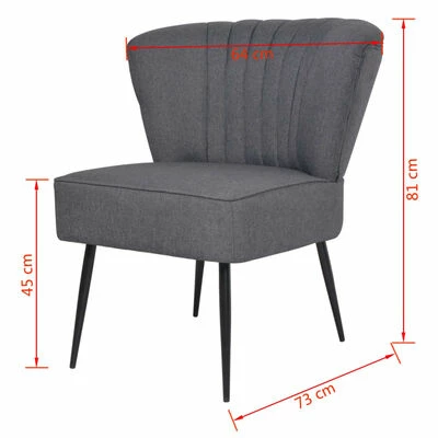 Le siège et le dossier sont épaississement rembourrés de mousse et la chaise est recouverte d’un tissu doux. Le cadre robuste est fait de contreplaqué et de pin. Les quatre pieds en acier ajoutent à sa construction robuste. Cette chaise de cocktail élégante sera un excellent ajout à votre maison !