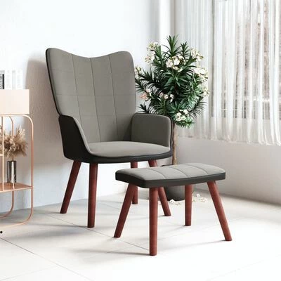 VidaXL Chaise de relaxation avec repose-pied Gris clair Velours et PVC