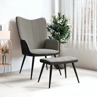 VidaXL Chaise de relaxation avec repose-pied Gris clair Velours et PVC