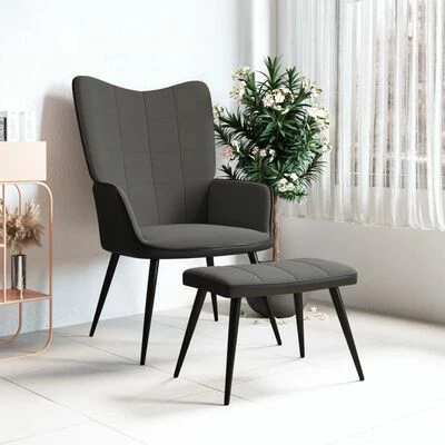 VidaXL Chaise de relaxation avec repose-pied Gris foncé Velours et PVC
