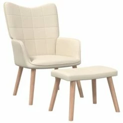 VidaXL Chaise de relaxation avec tabouret Crème Tissu