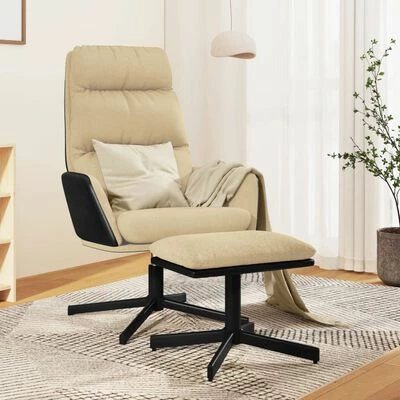 VidaXL Chaise de relaxation avec tabouret Crème Tissu