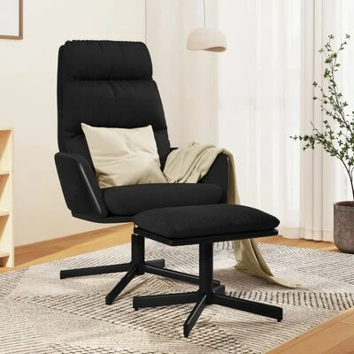 VidaXL Chaise de relaxation avec tabouret Noir Tissu