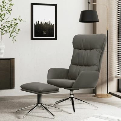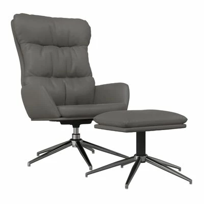 VidaXL Chaise de relaxation et tabouret Gris Cuir véritable/similicuir