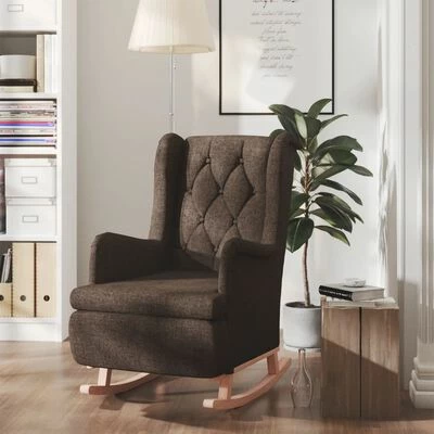 VidaXL Fauteuil avec pieds à bascule bois d’hévéa Marron foncé Tissu
