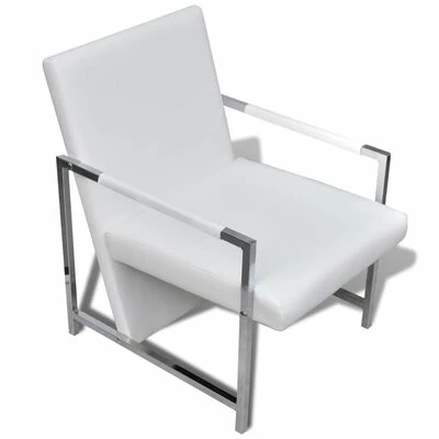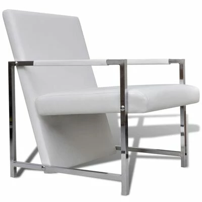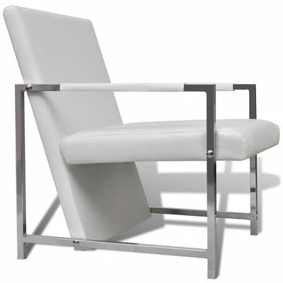VidaXL Fauteuil avec pieds chromés Blanc Similicuir