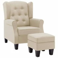 VidaXL Fauteuil avec repose-pied Crème Tissu