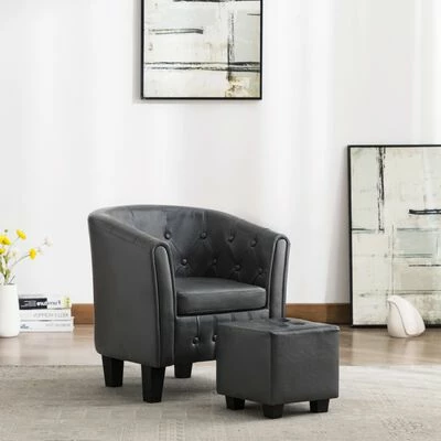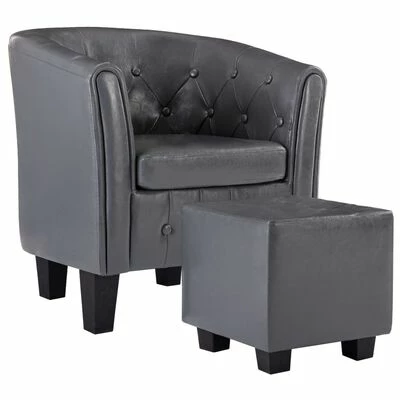 VidaXL Fauteuil avec repose-pied Gris Similicuir