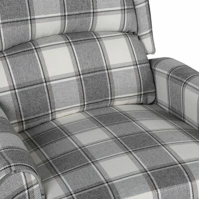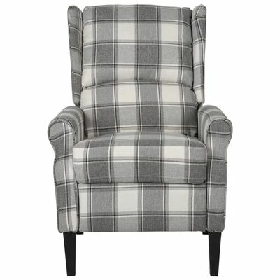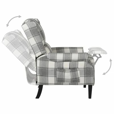 Le fauteuil inclinable est fait de tissu et soutenu par des pieds en bois, ce qui le rend durable et doux pour y s’asseoir. Le dossier est réglable vers l’arrière et le repose-pied peut être réglé vers le haut, vous permettant de vous allonger confortablement.