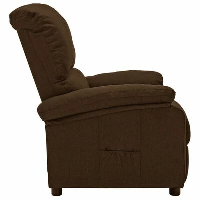 Le fauteuil inclinable est fait de tissu et bien rembourré, ce qui le rend résistant et doux pour vous y asseoir. Le cadre en métal et contreplaqué assure la stabilité. Le dossier est réglable vers l’arrière et le repose-pied peut être ajusté vers le haut, vous permettant de vous allonger confortablement.
