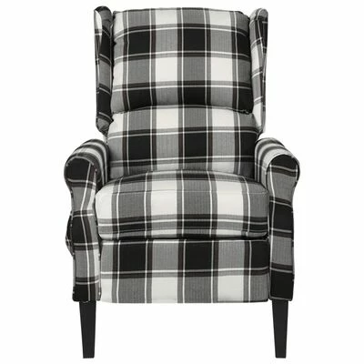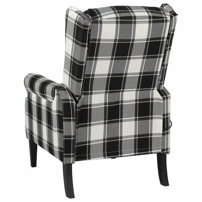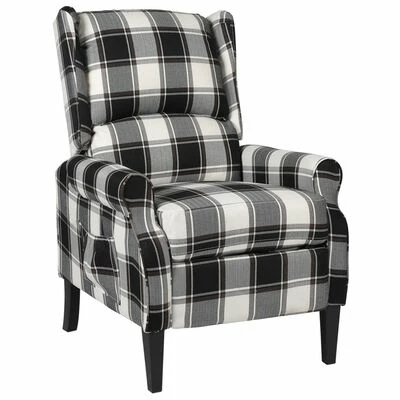 Le fauteuil inclinable est fait de tissu et soutenu par des pieds en bois, ce qui le rend durable et doux pour y s’asseoir. Le dossier est réglable vers l’arrière et le repose-pied peut être réglé vers le haut, vous permettant de vous allonger confortablement.