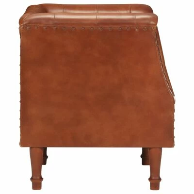 Le fauteuil tube est tapissé en cuir véritable de chèvre, qui est doux, durable et dégage un charme vintage. Le cadre est fait de bois de manguier massif et s’ajoute à son style rétro et la tapisserie est finie avec des rivets pour un aspect et une convivialité industriels. Les accoudoirs incurvés et le siège et le dossier rembourrés de façon épaisse font de ce fauteuil en cuir l’endroit idéal pour vous asseoir confortablement et vous détendre complètement en regardant la télévision ou en écoutant de la musique.