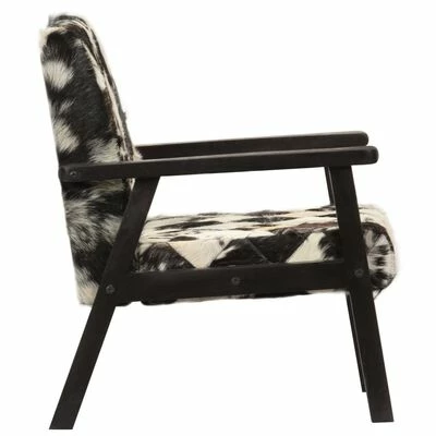 La chaise de canapé est faite de cuir véritable à poils longs, facile à nettoyer, qui ajoute une touche de luxe à tout intérieur. Son siège et son dossier bien rembourrés assurent un confort d’assise optimal. De plus, le cadre en bois d’acacia solide améliore la stabilité et la durabilité du fauteuil. Le motif noir et blanc en losange de cette véritable chaise en cuir véritable fait une décoration unique et magnifique. C’est l’endroit idéal pour regarder un film, lire un livre ou tout simplement vous détendre !